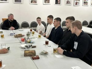Беседа с молодежью на тему «Роль мужчины в семье и обществе» прошла в приходском духовно-просветительском центре «Источник» в формате чайной трапезы. Протоиерей Сергий рассказал собравшимся о христианском понимании роли мужчины как мужа и отца в свете Священного Писания, затронул этимологию слов «замужем» и «супруги», а также раскрыл значение чуткости, взаимоуважения и ответственности в семейной жизни. Особое внимание было уделено вопросам веры, упования на Бога, верности и готовности к самопожертвованию ради любви.