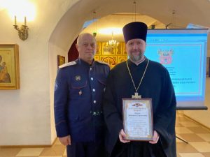 Со словами благодарности за соработничество и духовное окормление казаков и военнослужащих к духовенству обратился атаман Новочеркасска казачий полковник Андрей Демченко, который по поручению Главы города Павла Исакова за активную социальную и благотворительную деятельность, успехи в духовно-нравственном служении в столице Донского казачества – городе Новочеркасске вручил Благодарственные письма Администрации города клирику Михаило-Архангельского храма иерею Димитрию Гераськину и клирику Иоанно-Златоустовского храма иерею Анатолию Махонину. Также Благодарственное письмо Новочеркасского казачьего округа было вручено клирику Патриаршего Вознесенского войскового всеказачьего собора иерею Сергию Задикяну.