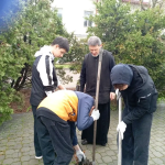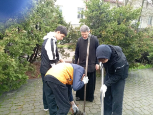 В рамках акции учащиеся привели в порядок прихрамовую территорию.