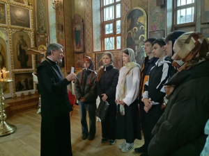 Школьников встретил настоятель прихода иерей Андрей Андреев, который рассказал об истории храма и о библейском событии воскрешения Лазаря, отмечаемом в этот день.