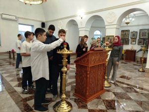 23 декабря 2025 года по согласованию с директором Задонской СООШ Еленой Яковлевой учащиеся старших классов в сопровождении классных руководителей Натальи Пшенецкой и Елены Шевченко посетили храм Всех святых хутора Победа.